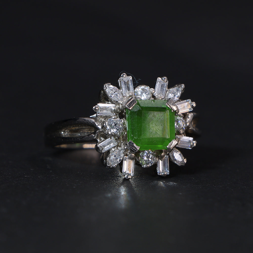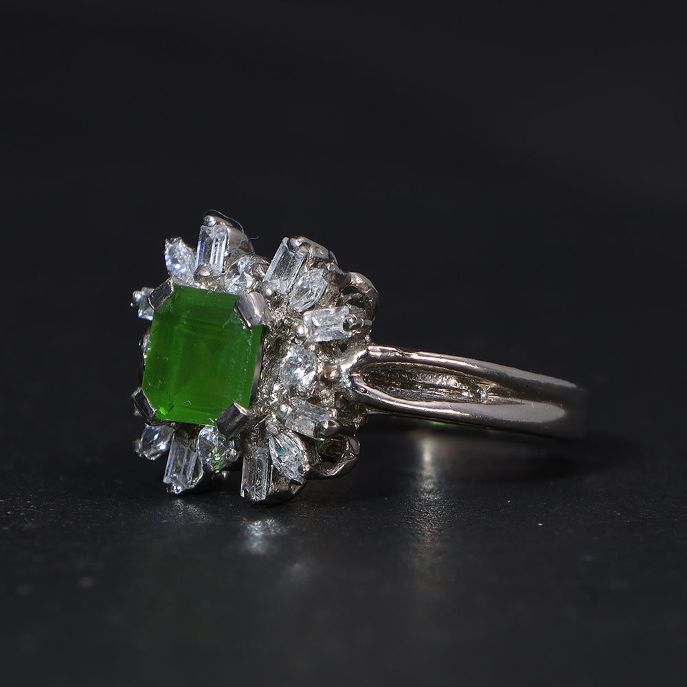 The vivid green color and the stepped/faceted cut suggest it is most likely Lab-Grown Emerald