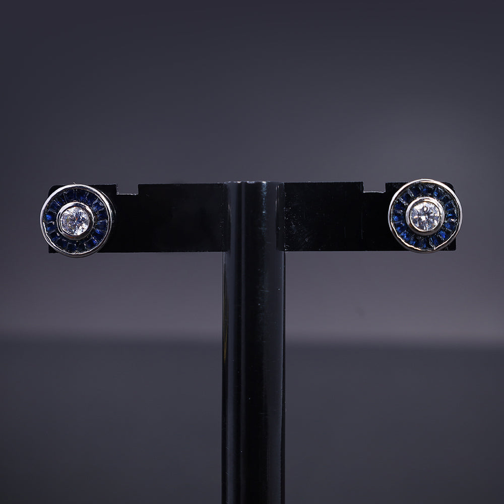Highlight: The center stone is beautifully encircled by a tight ring (halo) of small, deep Dark Blue Stones (resembling Sapphire or blue CZ), giving the piece a rich, vintage, and regal appeal.