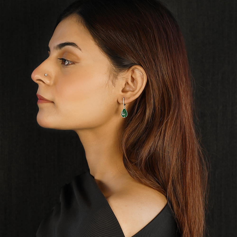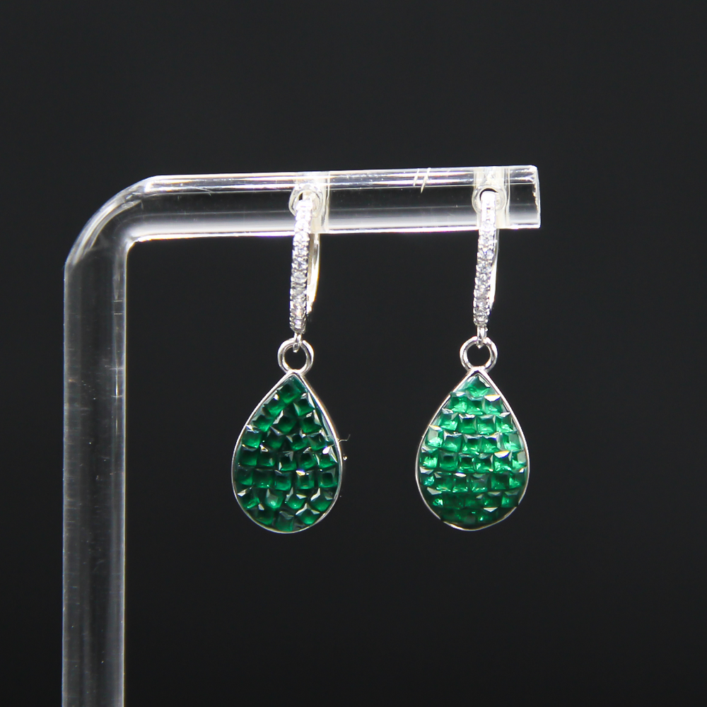 Beautifully crafted sterling silver earrings set with synthetic emeralds.