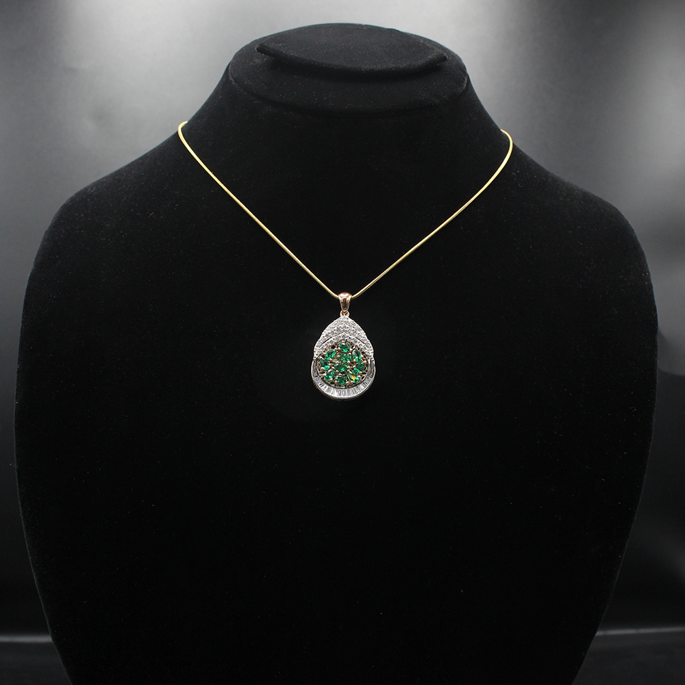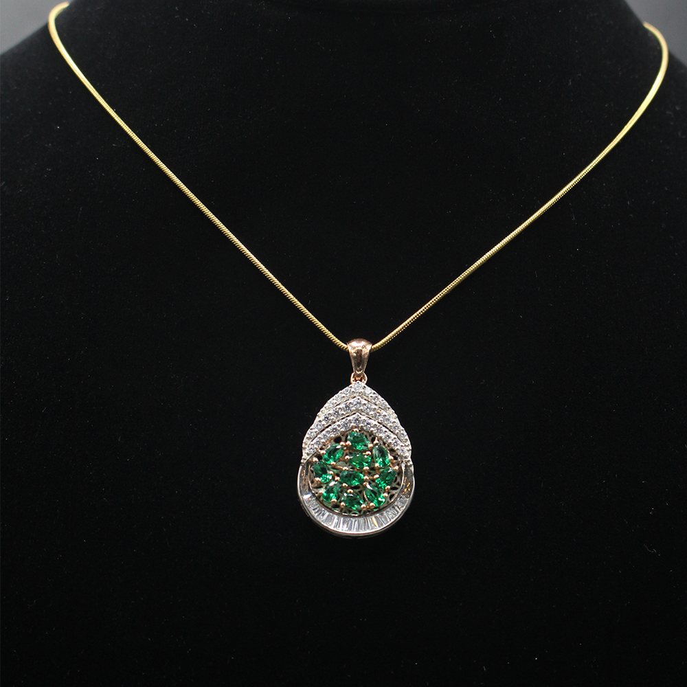 A delightful arrangement of zircons embedded in rhodium-plated sterling silver 925 with a centre synthetic blue sapphire.
