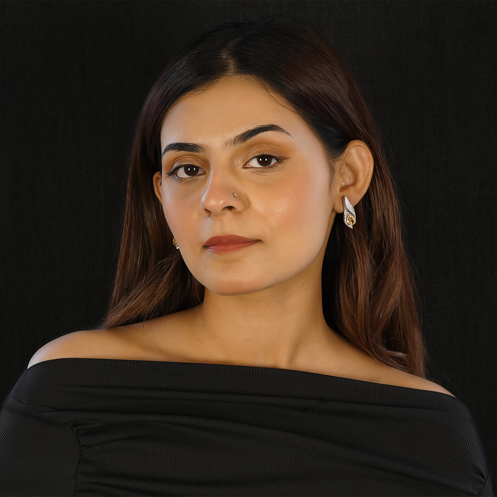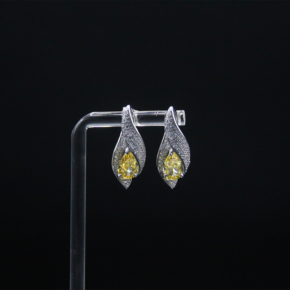 Beautifully crafted earrings in sterling silver set with zircons and yellow stones.
