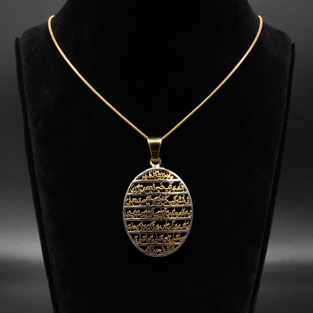 Naad e Ali, a silver pendant, transcends mere jewelry; it's a masterpiece of craftsmanship. Meticulously created with precision and passion, this exquisite piece elevates its allure through the addition of gold plating. The outcome is a detailed and elegant design that exudes sophistication, while the rhodium plating guarantees enduring brilliance and protection against tarnish. The pendant comes without chain. You can buy a chain separately.