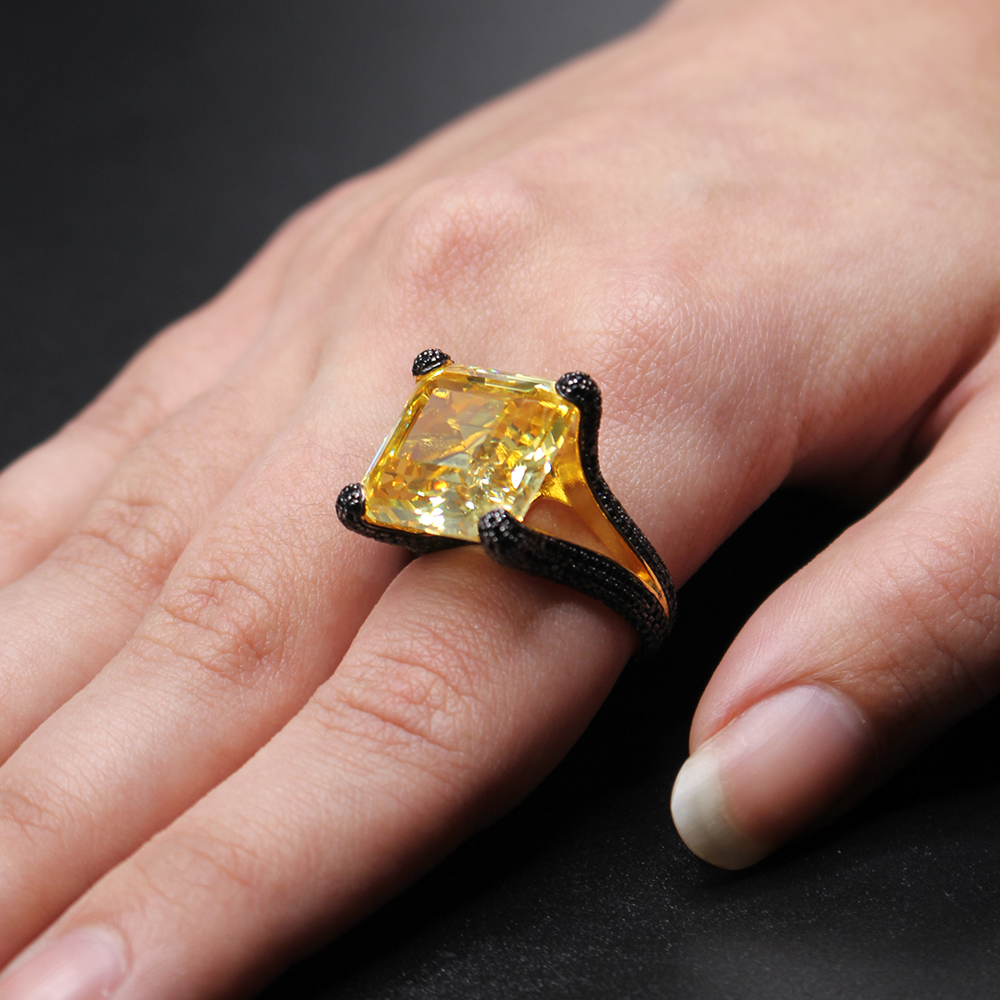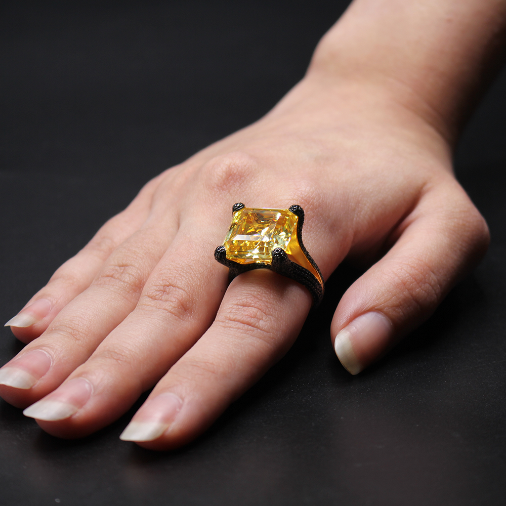A beautiful yellow synthetic stone set in sterling silver ring.