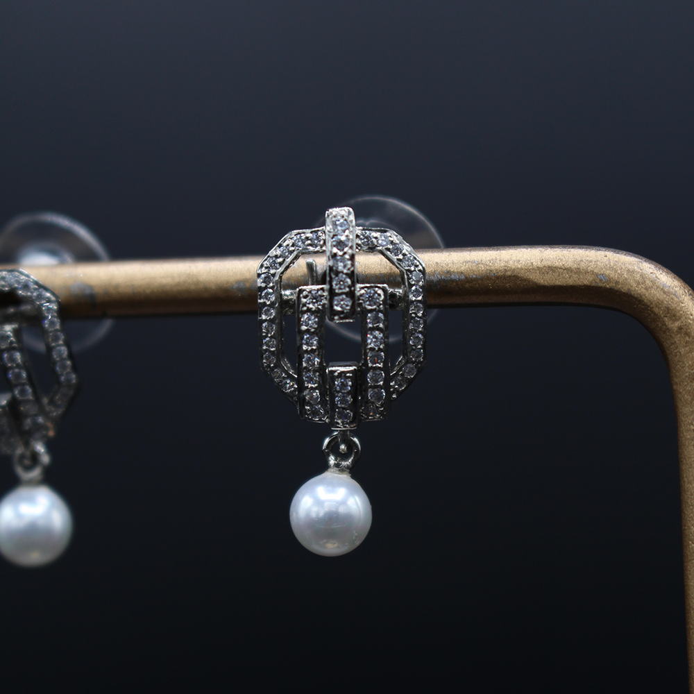 Enhance your elegance with our Drawstring Pearl Drop Earrings. Featuring a beautiful pearl gracefully suspended from a zircon -studded silver earring, these earrings are a perfect blend of sophistication and style. Elevate your look with this timeless piece that adds a touch of glamour to any occasion.