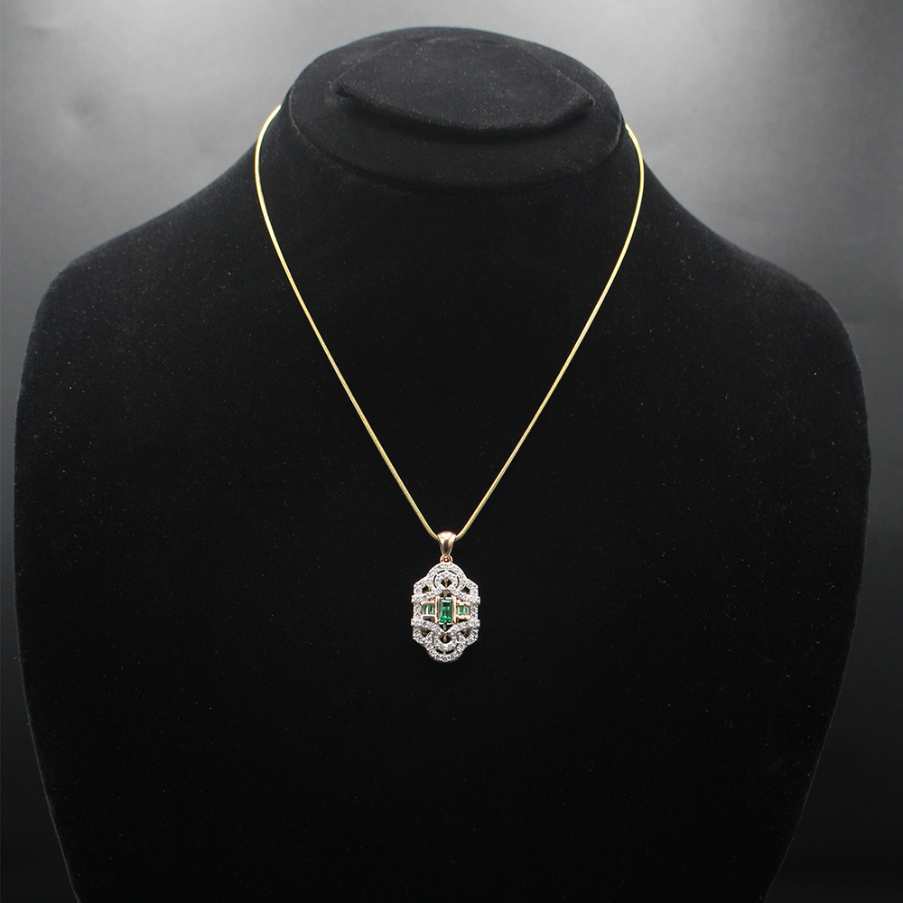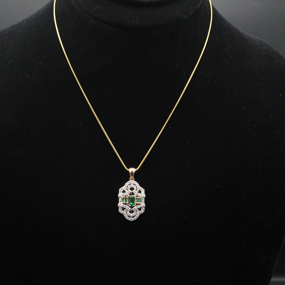 Sterling silver 925 pendant with zircons and synthetic emeralds.