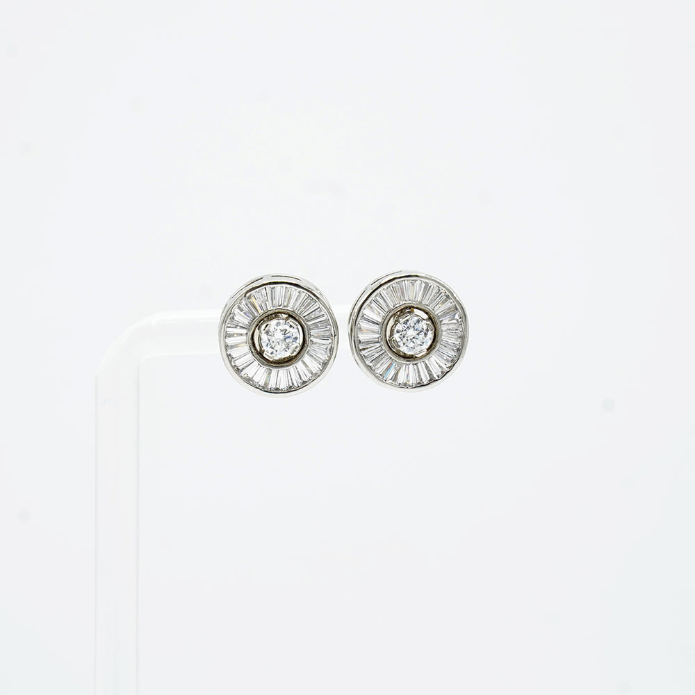 The Merry Go Round Stud Earrings are the finely crafted circular silver studs that exhibit impeccable craftsmanship, enhanced by rhodium plating and adorned with high-quality zircon accents.
