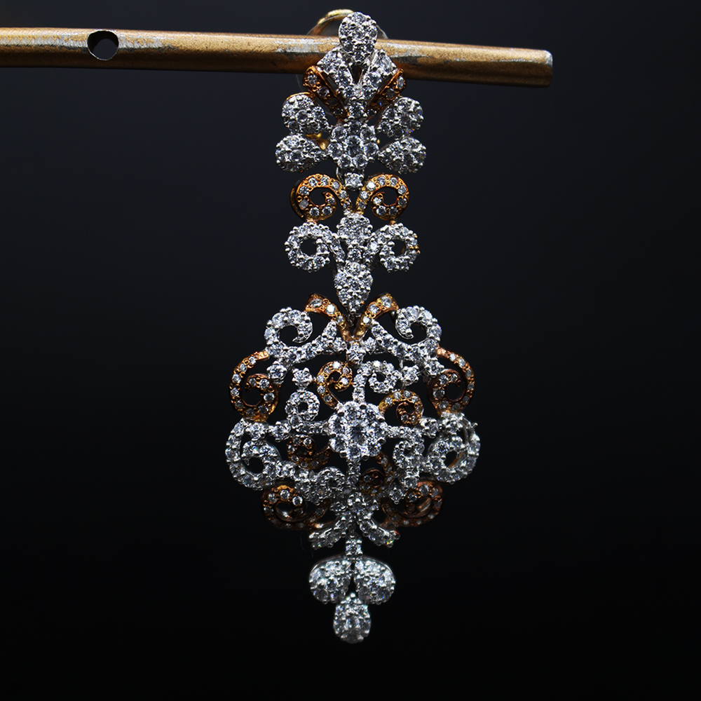 Elevate your elegance with our Mughal - e -Azam Dangling Earrings. Each earring is adorned with a stunning cluster of Zircons, delicately embedded on a base of silver and gold -plated silver. Illuminate your style with the timeless allure of these exquisite earrings.
