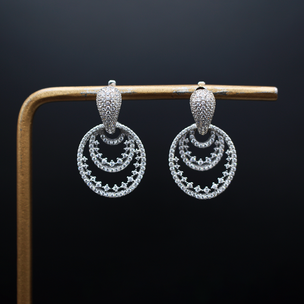 Elevate your elegance with our Spiral Charm Dangling Earrings. Crafted in sterling silver, these beautiful earrings feature a stunning setting of sparkling zircons, adding a touch of glamour to any ensemble.