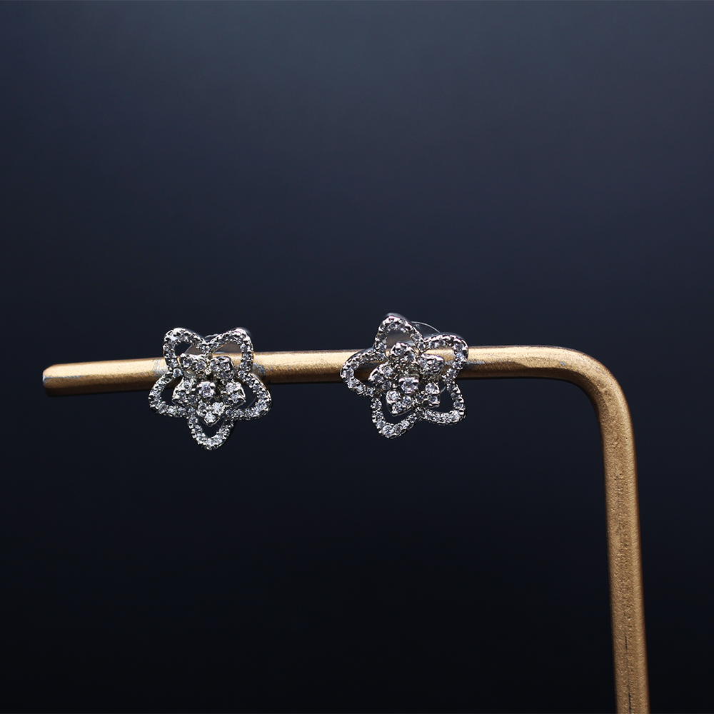 Introducing The Sweet Petunia Stud Earrings, a delightful arrangement of zircons embedded in rhodium -plated silver. Elevate your style with this charming accessory that effortlessly combines elegance and sophistication.